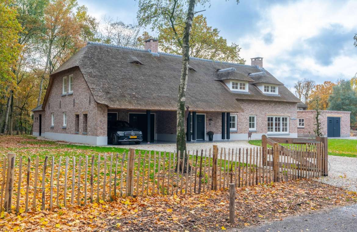 - De rieten kap van het landhuis is uitgevoerd als schroefdak.