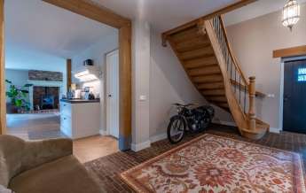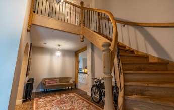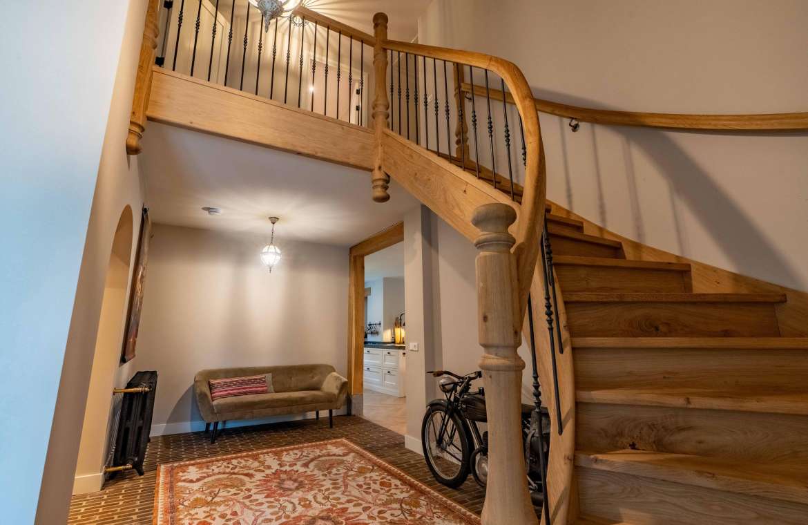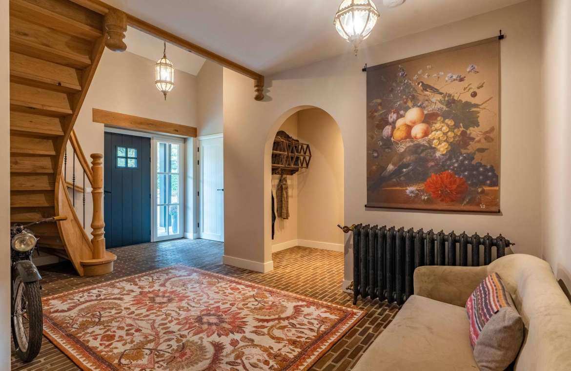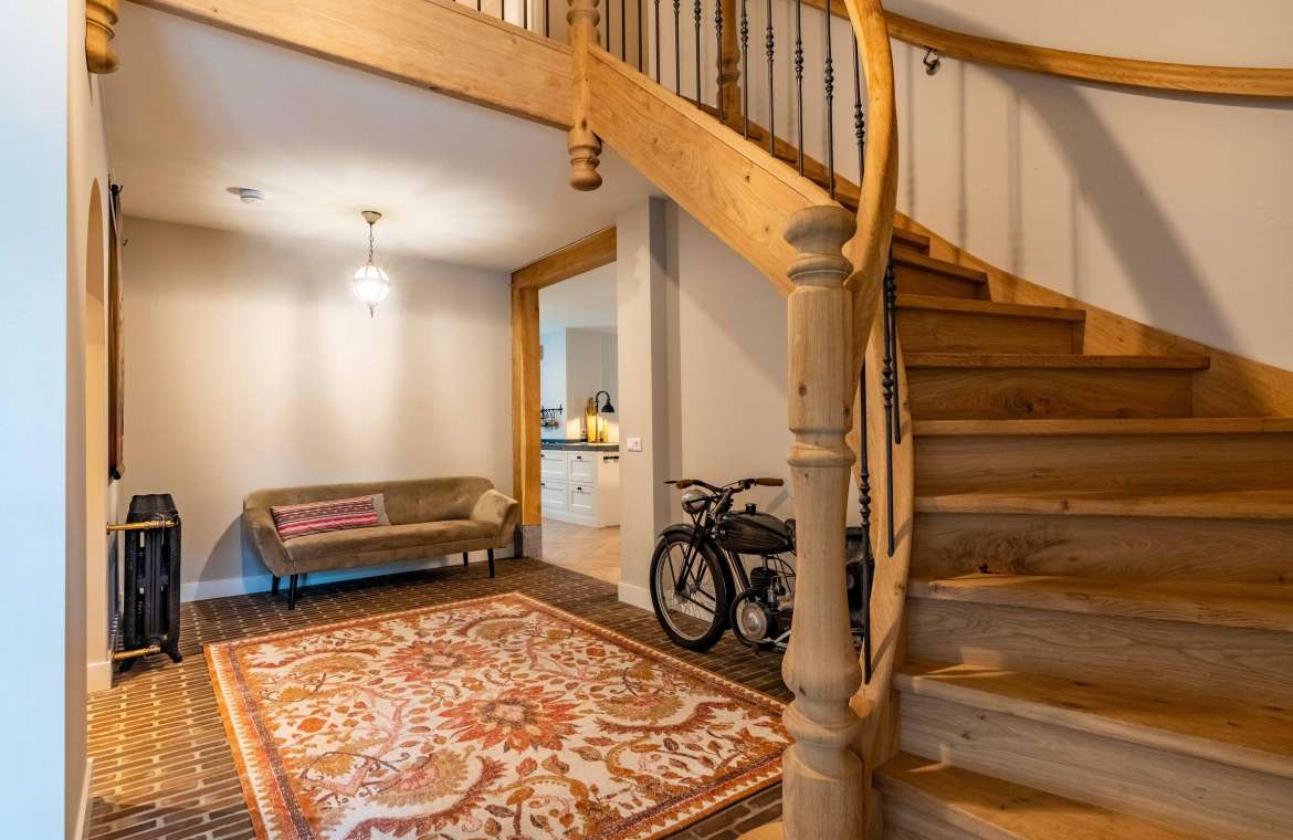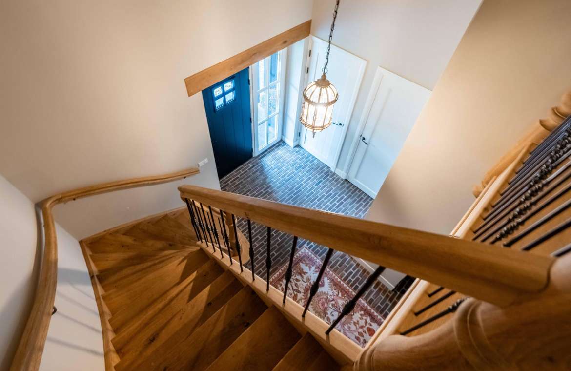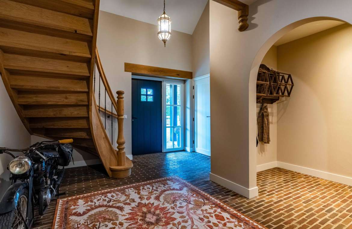 De prachtige eigenhouten trap, de vide, de oude authentieke klinkervloer zorgen voor een ‘warme’ binnenkomst.