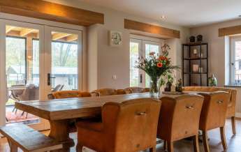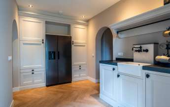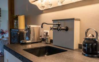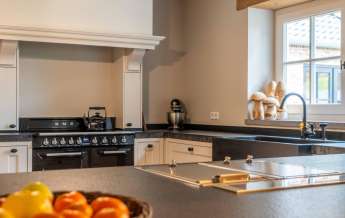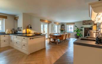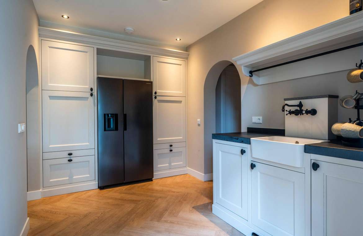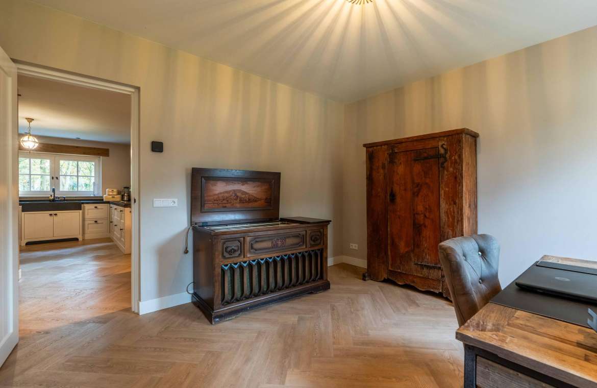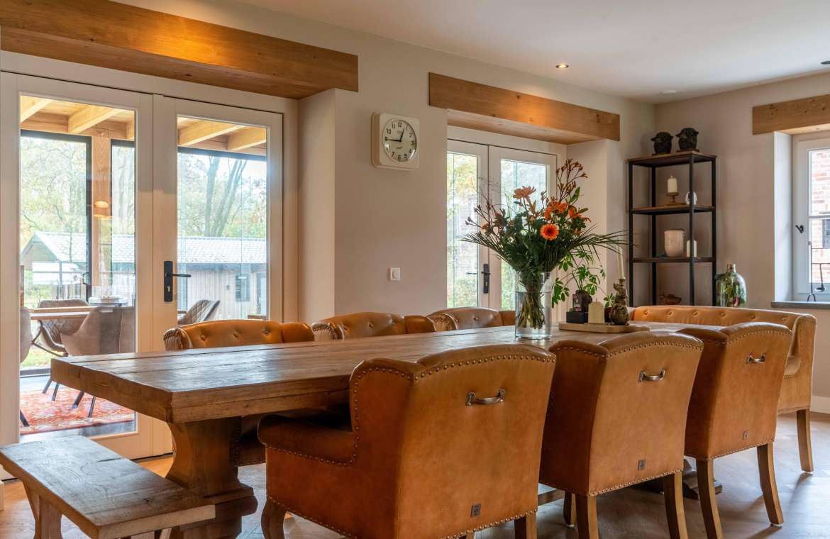 Vanuit de entree komt u in de sfeervolle, luxe en landelijke keuken met koffiecorner. De keuken is van alle gemakken en luxe apparatuur voorzien.