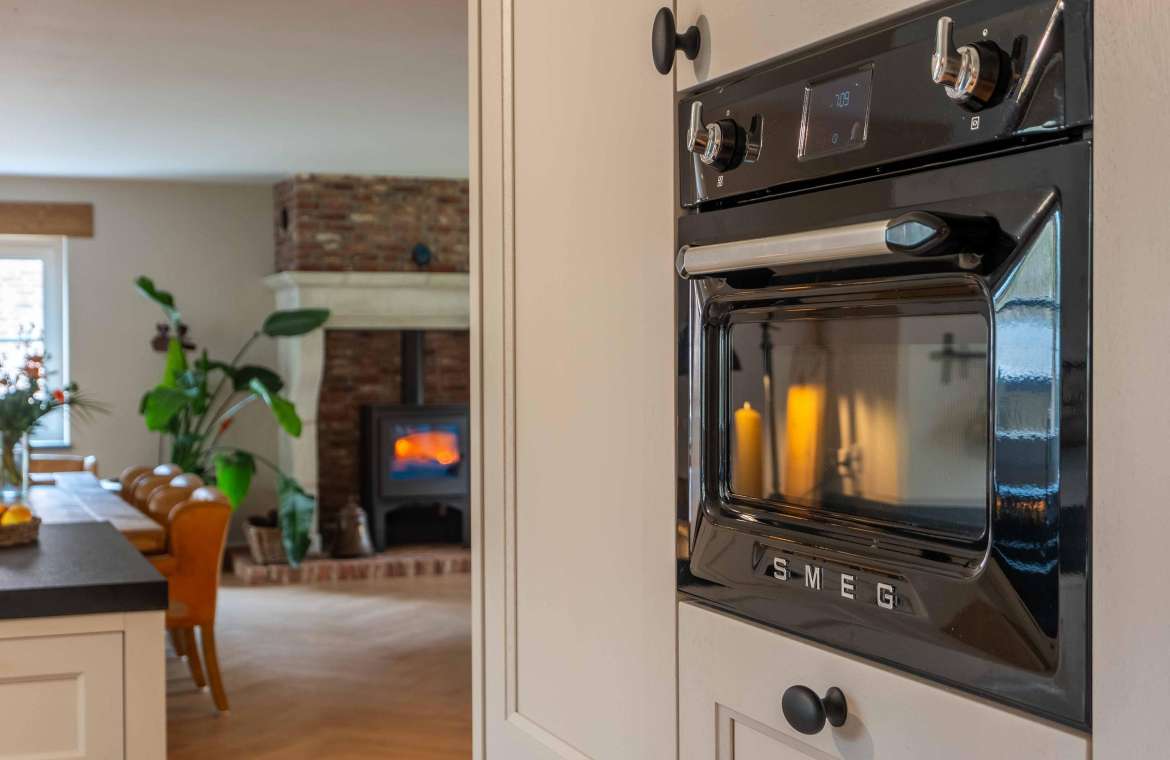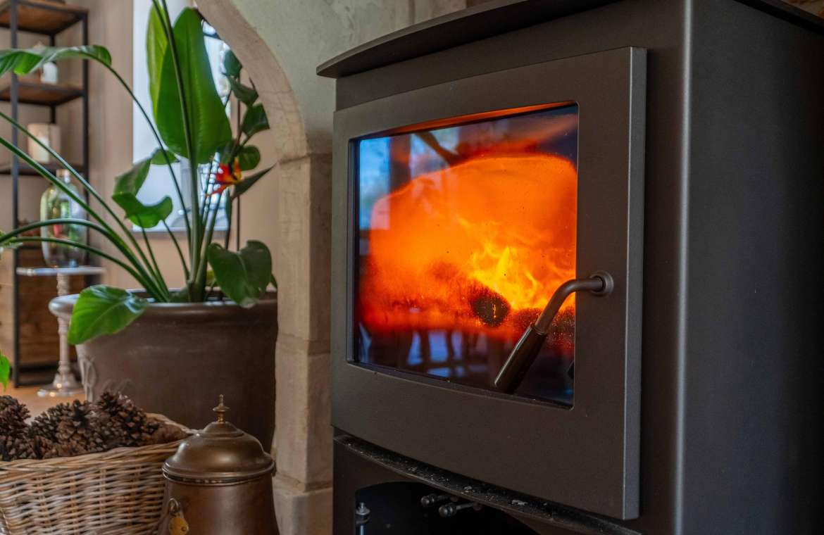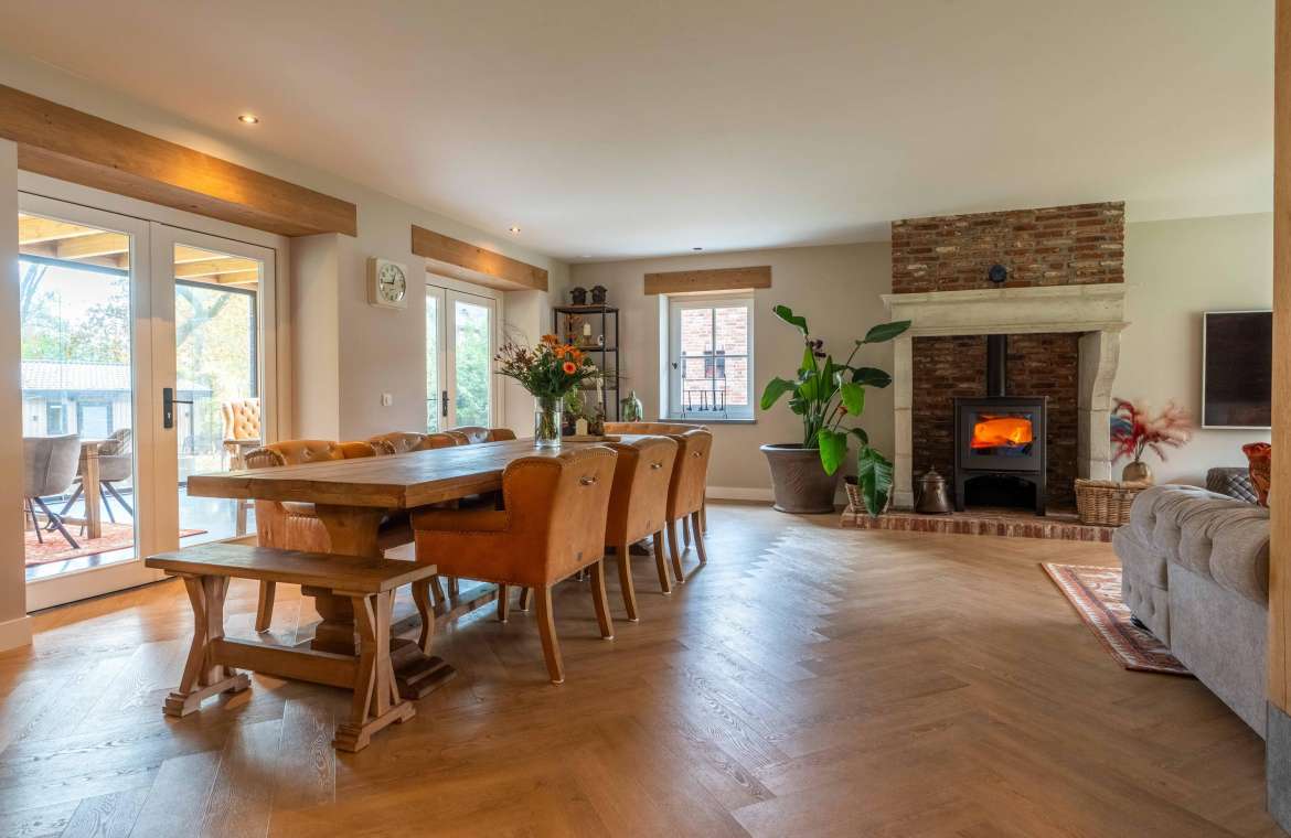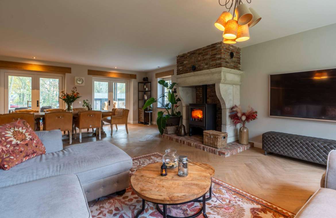 - De klassieke houthaard is zéér modern. De gehele CV-installatie is ook hierop aangesloten.