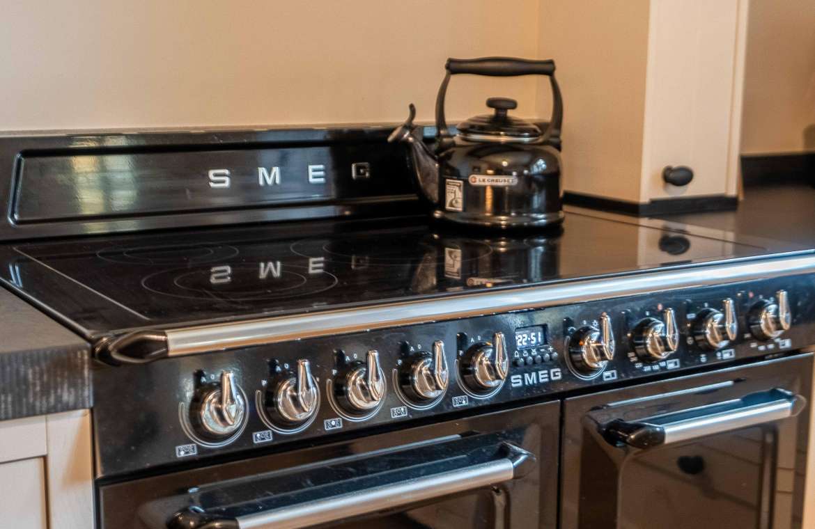 - 5 pits inductie kookplaat met ovens (Smeg ) oven/ heteluchtoven en opberg/warmhoudgedeelte