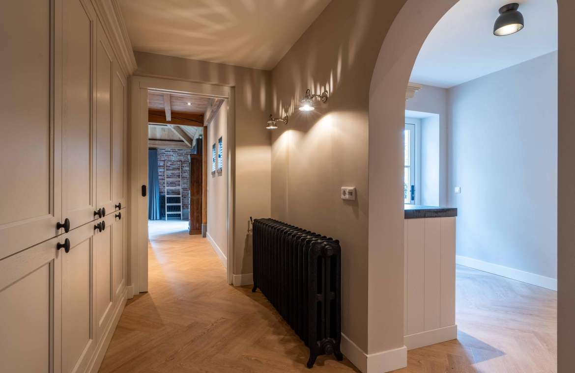 Vanuit de prachtige sfeervolle entree heeft u toegang tot de garderobe, het toilet, de meterkast en de verdieping.