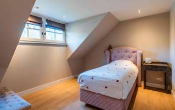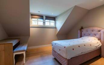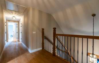 Via een eikenhouten trap bereikt u de verdieping. Aan de overloop grenzen 4 slaapkamers en de badkamer. Twee slaapkamers zijn qua afmeting zeer indrukwekkende ruimtes. Ook hier is alles tot in de puntjes afgewerkt.