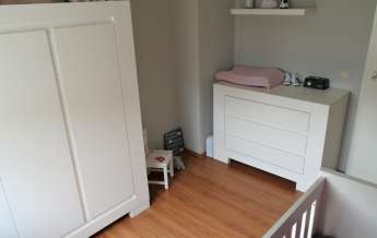 Deze slaapkamer is ook aan de voorzijde gesitueerd. Heeft een kantelraam met rolluik. De wanden en plafond zijn gestuct. De vloer is voorzien van een laminaat vloer.
