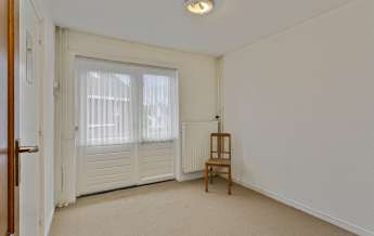Via een deur met glas heeft u toegang tot de veranda. Het raam is voorzien van een rolluik.