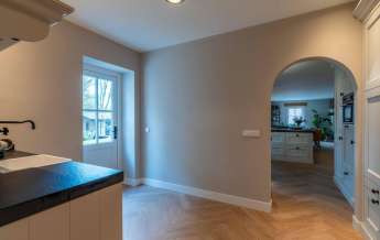 Deze unieke en knusse plek is het middelpunt van de woning, de leefkeuken vloeit over in de woonkamer en daardoor vormt het één geheel. De grote oude schouw is een echte eyecatcher. Door alle sfeervolle details die een mooie eenheid vormen, is dit een heerlijke plek om te ontspannen en te genieten van al het moois om je heen!
