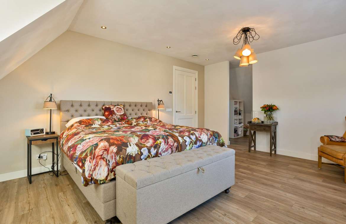 De verdieping is voorzien van 3 mooie slaapkamers waarvan de ouderslaapkamer voorzien is van een walk-in closet. De prachtige ruime badkamer is van alle luxe voorzien. Via een vaste trap heeft u toegang tot de open zolderverdieping waar een 4e en 5e slaapkamer te realiseren is.