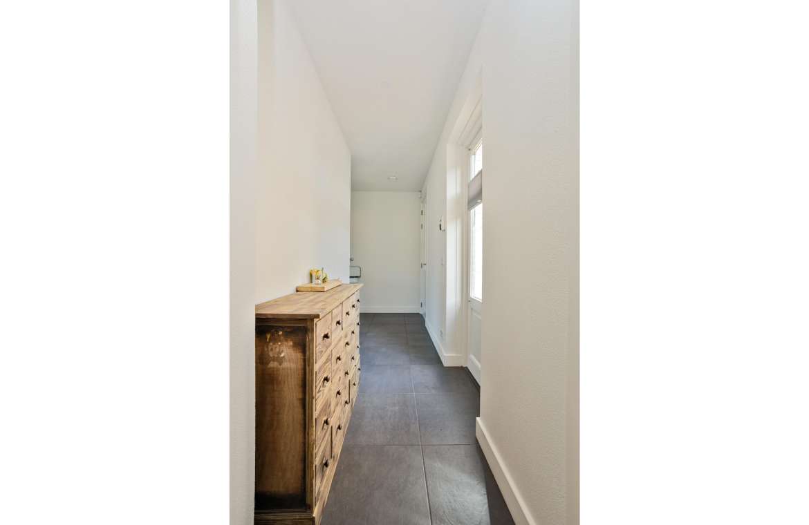 Het portaal is voorzien van een wasbak. Vanuit hier heeft u toegang tot het toilet, de achterom, de garage, de wasruimte en de tuinkamer.