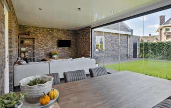 - De tuinkamer is geheel afsluitbaar met een glazen schuifwand.