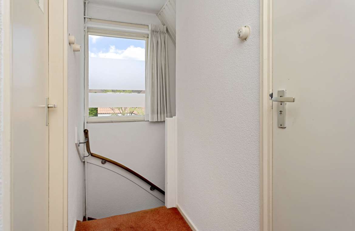 Door het raam is de overloop een lichte ruimte. Middels een vlizotrap bereikt u de ruime opbergzolder. De wanden zijn voorzien van spachtelputz.