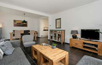De woonkamer is door de vele lichtinval een fijne ruimte om in te verblijven.