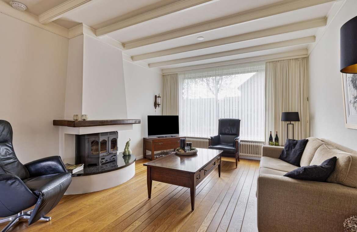De woonkamer is een fijne ruimte om in te verblijven. In het zitgedeelte aan de voorzijde is een houtkachel aanwezig. De wanden zijn afgewerkt met stucwerk en in de woonkamer is op de vloer een houten afwerking aanwezig. De kozijnen zijn uitgevoerd in hout en dubbel glas (de voor- en achterdeur zijn met enkelglas).