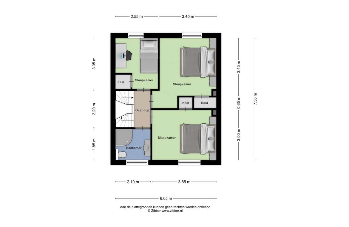 De hoofdslaapkamer en de overloop zijn afgewerkt met een vinyl in houtlook op de vloer en de overige ruimten met vloerbedekking.