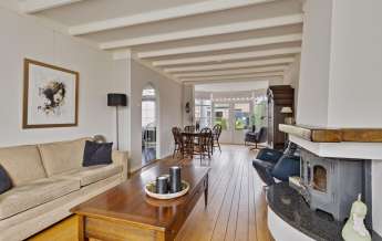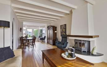 Dit huis heeft een gezellige woonkamer, voorzien van een houthaard en een deels open keuken. De keuken is geplaatst aan de achterzijde van de woning. Vanuit de keuken heeft u toegang tot de achtertuin.