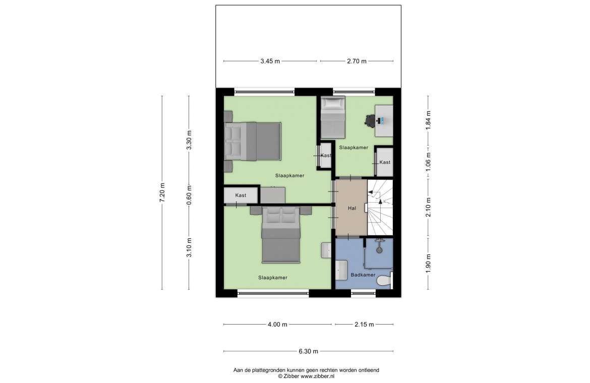 Deze slaapkamers zijn gesitueerd aan de achterzijde. Alle slaapkamers zijn uitgevoerd met een nette laminaatvloer in hout-look. De wanden zijn op alle slaapkamers voorzien van glad stucwerk en behang. De plafonds zijn gestuct.