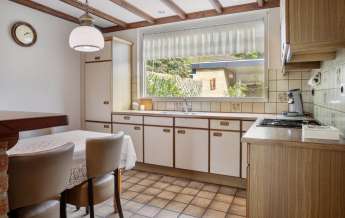 Dit huis heeft een gezellige woonkamer voorzien van een houthaard en een open keuken. De keuken is geplaatst in de aanbouw aan de achterzijde van de woning met zicht op achtertuin. Vanuit de keuken heeft u toegang tot de bijkeuken en de achtertuin.