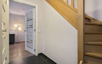 Vanuit hier heeft u toegang tot de 3 slaapkamers, de badkamer en de hardhouten trap naar de tweede verdieping.