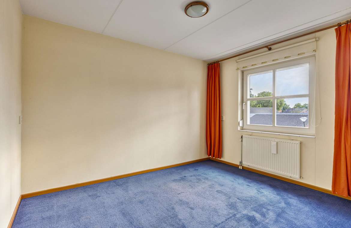 De overloop biedt toegang tot de 3 slaapkamers, de badkamer en de trap naar de tweede verdieping. De kozijnen zijn uitgevoerd in hout met draaikiep-ramen en dubbel glas.