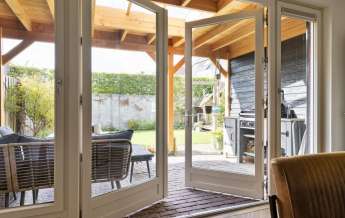 - Beneden zijn de Voordeur, achterdeur en garagedeuren uitgevoerd in hout met hardhouten kozijnen