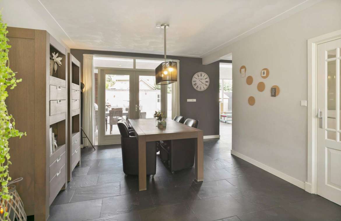 Mooi gelegen aan een plantsoen, staat op een royaal kavel deze instapklare ruime hoekwoning met grote aanbouw, veranda, bijkeuken en vrije achterom. De woonkamer is voorzien van een houtkachel. Vanuit het eetgedeelte aan de achterzijde heeft u d.m.v. openslaande tuindeuren toegang tot de veranda. De halfopen keuken grenst aan de grote aanbouw. Vanuit hier heeft u toegang tot de veranda/ achtertuin en de wasruimte. De eerste verdieping is voorzien van 3 slaapkamers en een badkamer. Via een vaste trap heeft u toegang tot de voorzolder en de 4e slaapkamer. De onderhoudsvrije royale achtertuin is voorzien van een berging en fietsenstalling. Door zijn meerdere zitgedeeltes is dit een heerlijke plek om te genieten van het buitenleven. Parkeren kunt u op eigen terrein en er is voldoende parkeergelegenheid nabij. Deze woning is gelegen in een woonwijk, vlakbij veel groen en het centrum met zijn vele voorzieningen. Bel voor een afspraak naar Pieter van den Hurk 06 28 123 755 Algemeen - Bouwjaar ca. 1973 - Perceeloppervlakte ca. 298 m2 - Woonoppervlakte ca. 147 m2 - Woninginhoud ca. 480 m3 - Berging ca. 10 m2 - Fietsberging ca. 4 m2 - Veranda ca. 16 m2 Bijzonderheden - Deze woning is in 2010 t/m 2013 flink verbouwd. Zoals o.a. nieuwe vloeren met isolatie, nieuwe elektra, stucwerk wanden/ plafonds en de meterkast. - De geheel geïsoleerde aanbouw met veranda is geplaatst in ca. 2015. - De buitenzijde is in ca. 2018 geheel opnieuw gevoegd. - De badkamer is in ca. 2020 vernieuwd. - De begane grond (excl. toilet) is voorzien van vloerverwarming (ook in de veranda is voorbereiding aanwezig). - De vloer in de hal, woonkamer en keuken is voorzien van een doorlopende leistenen tegelvloer. - De vloer in de veranda, aanbouw en wasruimte is voorzien van een doorlopende ‘houtlook’ tegelvloer. - Dit huis is voorzien van nieuwe vensterbanken, houten kozijnen met dubbel glas en draaikiep ramen - De woning is grotendeels voorzien van glad gestucte wanden en plafonds afgewerkt met hoge gelakte plinten. - De gehele verdieping is voorzien van rolluiken. - De vaste trap naar de 1e en 2e verdieping is uitgevoerd met een fraaie houten trapbekleding. - Alle binnendeuren zijn paneeldeuren met fraai hang- en sluitwerk. Indeling woning Begane grond Via de voortuin betreedt u de entree. Vanuit de hal heeft u toegang tot de meterkast, het toilet, de trapkast, de woonkamer en de trap naar de eerste verdieping. Het plafond in de hal, woonkamer en keuken is rondom afgewerkt met een strakke sierlijst. Meterkast De meterkast is uitgerust met 8 groepen, 2 aardlekschakelaars en een aparte geschakelde groep t.b.v. de inductiekookplaat. Tevens bevindt zich hier de gasmeter. De watermeter (vernieuwd in ca. 2013) bevindt zich in de watermeterput bij de voordeur. Toilet De deels betegelde toiletruimte is voorzien van een toilet en fonteintje. Ventileren kunt u d.m.v. een klapraam in de zijgevel. Woonkamer Via een deur met glas komt u in de gezellige woonkamer. Aan de voorzijde treft u in het zitgedeelte een natuurstenen schouw met houthaard. Aan de achterzijde bevinden zich openslaande tuindeuren die toegang geven tot de veranda en achtertuin. Vanuit hier heeft u ook toegang tot de halfopen keuken. Keuken De mooie keuken is geplaatst in een hoekopstelling voorzien van onder- bovenkasten en lades. De lichte kasten en het donkere stenen werkblad vormen samen een mooi geheel. Verder is aanwezig - Inbouwvaatwasser (Siemens) - 4-pits inductie kookplaat - Afzuigkap (Smeg) - Oven (Smeg) - Inbouwkoelkast (Siemens) - Inbouwvrieskast (Siemens) - Boiler Vanuit de keuken heeft u toegang tot de aanbouw. Aanbouw Het plafond is voorzien van een lichtstraat en inbouwspots. Via de schuifpui heeft u toegang tot de veranda en achtertuin. Door de vele ramen is dit een heerlijke ruimte om in te verblijven. Via een schuifdeur aan de voorzijde heeft u toegang tot de wasruimte. Wasruimte/ bijkeuken Hier zijn de witgoedaansluitingen aanwezig. Het plafond is voorzien van inbouwspots. Het hellende dak is onder de kap toegankelijk waardoor een extra opbergvliering ontstaat. Vanuit de bijkeuken bereikt u de oprit. Verdieping Vanuit de overloop heeft u toegang tot de 3 slaapkamers, de badkamer en de trap naar de zolderverdieping. De slaapkamers en overloop zijn afgewerkt met een doorlopende laminaatvloer. Slaapkamer 1 Deze ouderslaapkamer is gesitueerd aan de achterzijde en is voorzien van tv-aansluiting. Het plafond is hier ook voorzien van een strakke sierlijst rondom. Alle slaapkamers op de verdieping zijn voorzien van een hor. Slaapkamer 2 Deze slaapkamer is gesitueerd aan de voorzijde. Badkamer De prachtige badkamer met vloerverwarming (uit 2020) is voorzien van een inloopdouche met twee nisjes, stortdouche, thermostaatkraan, een wandtoilet, een dubbele wastafel met badmeubel, spiegelkast met verlichting en een designradiator. De kleurnuance van de tegels en badmeubel zorgen voor een ‘warme’ uitstraling. Er is een raam aanwezig in de voorgevel, fijn voor het daglicht en de extra ventilatie. Slaapkamer 3 Deze slaapkamer is gesitueerd aan de achterzijde en is voorzien van een nis/ inbouwkast. Tweede verdieping Via de vaste trap komt u op de voorzolder. Daar is de Cv ketel (Nefit topline compact HRC 30 CW5 uit ca. 2010) geplaatst. In de achtergevel zit een klein dakraampje. Vanuit hier heeft u toegang tot de 4e slaapkamer. Slaapkamer 4 Deze slaapkamer heeft een dakraam aan de voor- en achtergevel. Er zijn knieschotten geplaatst, makkelijk voor de nodige opslag. Buitenzijde Deze woning beschikt over een voor- en achtertuin. De mooi aangelegde voortuin is voorzien van vaste beplanting en worteldoek met houtsnippers. De oprit is bestraat. De overkapping is betimmerd en is voorzien van inbouwspots. De ruime, op het oosten gelegen achtertuin is voorzien van een vrije achterom, een stenen berging (voorzien van elektra) en een fietsenstalling. De onderhoudsvrije achtertuin is bestraat en een gedeelte bestaat uit kunstgras omringd door een gemetselde schutting met