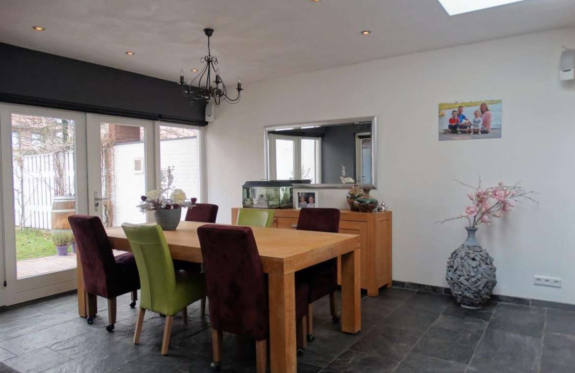Vanuit de eetkamer kom je via de achterdeur in een overdekt ‘buitenportaal’ en via de hardhouten openslaande tuindeuren bereik je de ruime aluminium veranda.