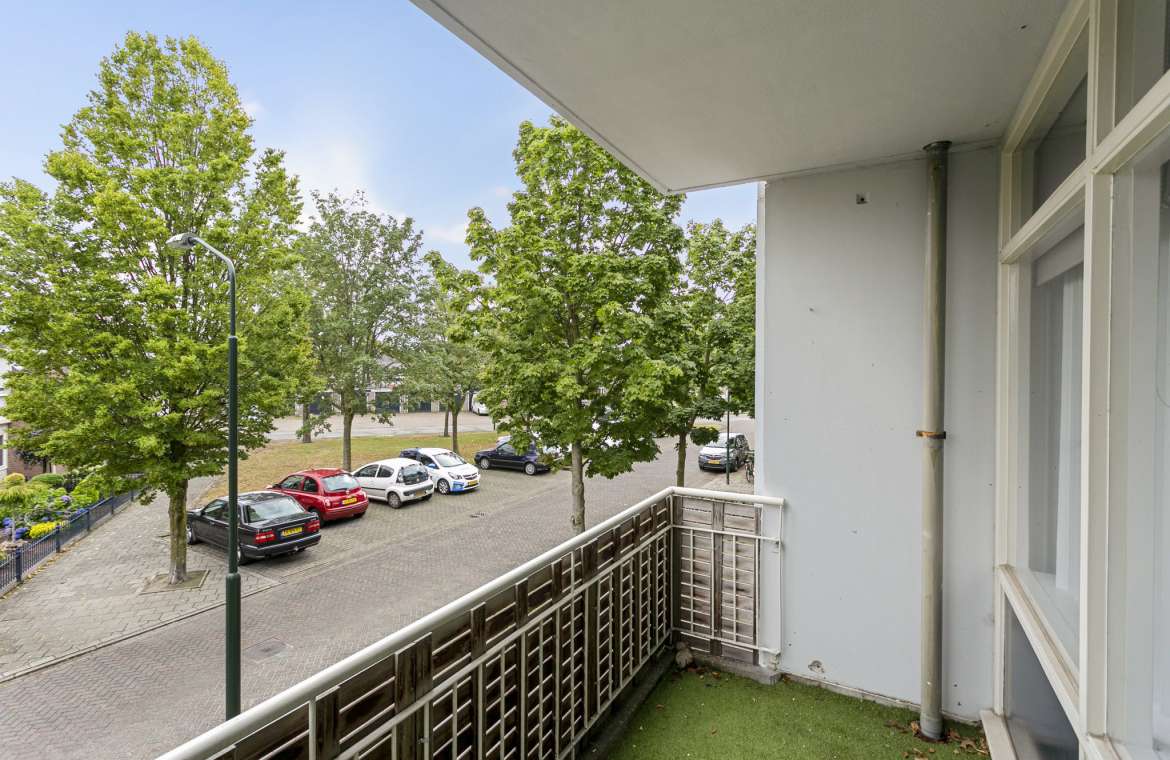 De ruime slaapkamer voorzien van toegang tot het zonnige balkon aan de voorzijde.