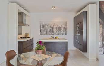 De living is voorzien van een vloertegel ( V&B Fire & Ice ) met vloerverwarming en vloerkoeling. Openslaande deuren naar het eigen dakterras met heel veel privacy. Door middel van openslaande tuindeuren komt men op een privé dakterras met alle privacy.