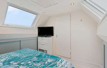 Deze slaapkamer heeft aan beide zijden een dakraam uitgevoerd met een verduisterend rolgordijn. Vanuit deze kamer heeft u toegang tot de opbergzolder.