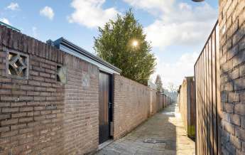 De recent vernieuwde achtertuin met veranda is een heerlijke plek om te kunnen relaxen en ontspannen. De tuin is geheel bestraat met aan beide zijden een houten schutting. De Leibomen en de gemetselde schutting aan de achterzijde zorgen voor de nodige privacy. De vrije achterom is vanuit de poort tot aan de garage voorzien van een 2e overkapping. Beide zijn uitgevoerd in aluminium, met kunststof opaal dakplaten en voorzien van verlichting.