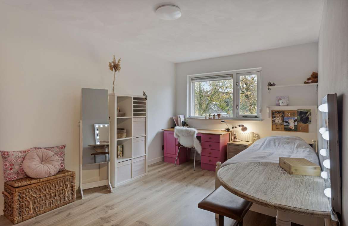 Deze mooie slaapkamer is gesitueerd aan de voorzijde en voorzien van een dakkapel met rolluiken. De wanden zijn netjes afgewerkt en er is een fraaie laminaatvloer aanwezig, kortom volwaardige 4e slaapkamer.