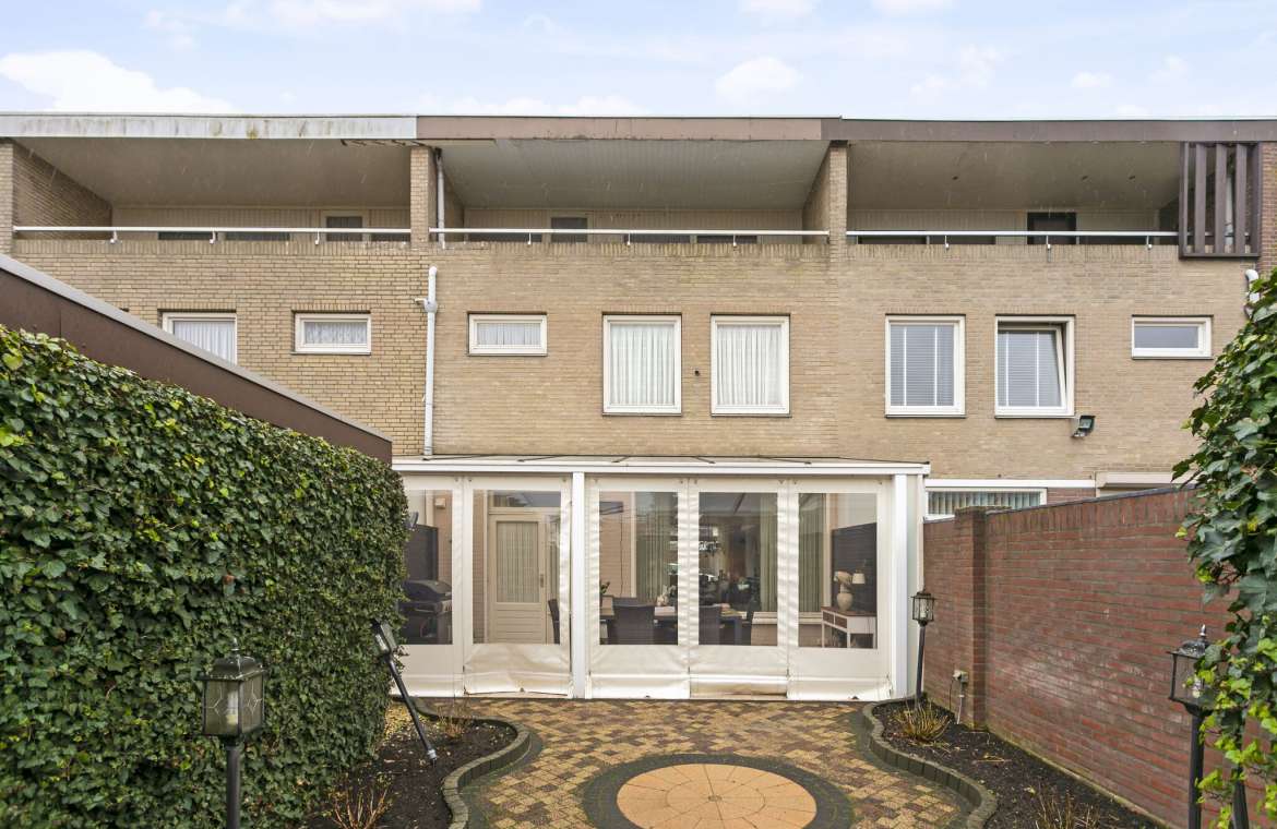 De gezellige, onderhoudsvriendelijke achtertuin heeft een heerlijke veranda, te gebruiken in de zomer maar ook in de winter. De veranda is voorzien van 5 delen omhoogritsbaar tentzeil.