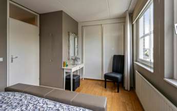 Deze ruime ouderslaapkamer is gesitueerd aan de gehele achterzijde voorzien van mooie raampartijen en een ruime inbouwkast. De vloer is afgewerkt met een houtlook PVC vloer.