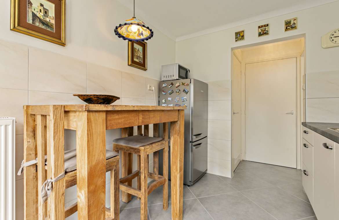 De vernieuwde keuken is voorzien van een gaskookplaat, een afzuigkap, een oven, een spoelbak, een vaatwasser en een losse koelkast.