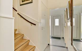 De trap naar eerste verdieping treden vernieuwd door houten bekleding.